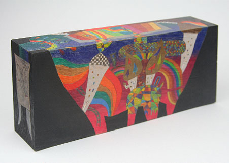 2023年/木片に色鉛筆/H100×W230×D50mm